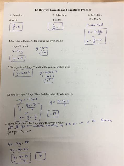 If you are looking for rewriting equations and formulas worksheet answers, you can find them online. There are many online resources that provide worksheets and answer keys for rewriting equations and formulas. You can also find worksheets and answer keys in textbooks and other educational materials. In addition, you can consult with a math tutor or professor for assistance with rewriting equations and formulas worksheets.