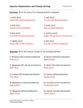 Naming and recognizing hydrates is an important part of understanding chemistry. By understanding how to name and recognize hydrates, you can better understand other topics in chemistry. The answers to Naming Hydrates Worksheet 6 are: sodium sulfate decahydrate Na2SO4•10H2O, calcium chloride hexahydrate CaCl2•6H2O, copper sulfate pentahydrate CuSO4•5H2O, aluminium sulfate octahydrate Al2(SO4)3•8H2O, and potassium nitrate trihydrate KNO3•3H2O.